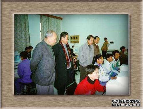1996年4月20日,周忠继先生在董事长葛晋德等陪同下,去木渎中学和木渎三中电脑室观看纵横码推广情况。