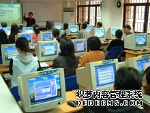 | 來自廣州白雲區廣園小學的三位一年級的小 學生現場為領導和嘉賓作縱橫漢字輸入表演。 三位小學生的5分鐘最快輸入497個漢字的優 秀成績,獲得現場的一致好評。 | 本研究室林小苹老師應邀為第一期學員上輔 導課。 |