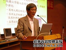| 来自河南、贵州,广西,广东、香港五个省、市、地,八十几个学校机构的117位中小学校长、幼儿园园长,幼师、老师等参加了为期两天、内容丰富的培训活动。 | 香港大学教育学院副院长谢锡金教授首先在培训班开班仪式上致辞。谢教授既阐明了开展纵横汉字输入法教学实验的深远意义,又勉励学员们珍惜学习机会,学有所成,满载而归。 |