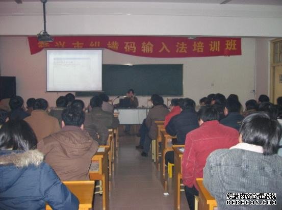 此次培训时间为1月26日上午9:00-11:50,下午12:30-3:00。培训采用教室集中授课和机房上机操作相结合的培训方法。培训班开始,由泰兴市教学仪器装备站的顾新主任对本次培训的目的、要求进行了说明。然后,研究所张玉华老师详细介绍了纵横码笔形、单字、词组的取码方法,详细介绍了纵横输入法软件及其他配套软件的使用方法。讲解结束后学员分在两个机房进行练习。