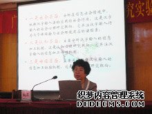 为配合实验总课题组的计画,使实验教师更深入了解和掌握纵横信息数字化学习研究课题的历史背景、课题特点、功能原理、研究方法等,从而开展项目研究、拓展教育视野。由广东省社会科学院和广州市教育科学研究所合作举办的「纵横信息数字化学习研究实验课题骨干教师培训班」于2007年9月21至22日,假广东省电教馆顺利举行。来自广东省内七个地市的几十所中小学幼儿园近百名教师参加了培训。 来自广州市实验学校白云区广园小学的三位小同学,为培训班的领导、嘉宾和老师们现场演示了纵横信息数字化学习汉字输入技能。三位小同学中速度最快的黄铭兴同学,以五分钟输入923字的优异成绩,赢得了现场领导老师们的高度赞赏。 被邀请为培训班主讲导师的林小苹老师分别为老师们作了四项不同内容的讲座,(1) 纵横汉字输入法发明与发展;(2) 纵横汉字输入法原理规则功能与软件使用;(3) 纵横信息数字化学习研究课题实验;(4) 纵横汉字输入与儿童认知能力的发展。深受老师们的欢迎。 来自广东潮州市纵横码实验先行点的钱瑞扬老师(潮州市昌黎路小学)、陈仰娟老师(潮州市绵德幼儿园)、林枫老师(潮州市兰英第二幼儿园)为老师们介绍了先导实验点的宝贵经验,分享了实验研究成果。 该期培训班还得到各方领导的重视,出席开班仪式与学员们照相的领导有:广东省社会科学院田丰副院长(前座右八)、广东省电化教育馆邵子铀(前座右七)、广州市教育科学研究所李书记(前座右九)等等。
