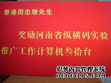 鉴于河南省纵横汉字输入法应用推广工作做出的成绩,会上,林小苹老师受周忠继先生的委托,将三十台电脑奖励给河南省。 | ||