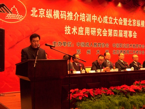 3、北京纵横码推介培训中心成立大会上,北京市昌平职业学校培训中心主任张利成以“掌握纵横码拓宽就业路”为题,汇报了在转岗农民中推广纵横码的经验。