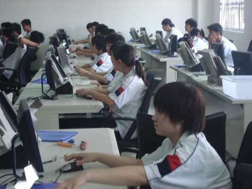 4、在昌平区教委考试中心、国家某部委考试中心就业实习的同学们,利用纵横码录入试题、题库、分数时,解决了难、生、僻字录入问题。被用人单位称赞“录入高质量、高效率;正确率堪称榜首!”图为:参加考试中心录入的同学们正在利用纵横码专心致志地实习。