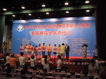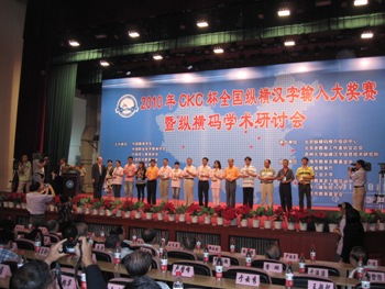 2010年8月7日至10日,2010年CKC杯全国纵横汉字输入大奖赛暨纵横码学术研讨会在北京隆重举行。苏州大学纵横汉字信息技术研究所名誉所长周忠继先生、所长钱培德教授、苏州大学计算机学院杨季文院长参加了本次活动。参加本次活动的研究所老师还有李培峰副所长及赵雷、朱晓旭、顾平、程宝雷、陈宇、周克兰、张玉华等7位老师。几位老师参加本次活动的一个重要任务是协助2010年CKC杯全国纵横汉字输入大奖赛的竞赛组作好大奖赛的技术保障工作,同时作为大赛裁判委员会的成员做好比赛的评审工作。