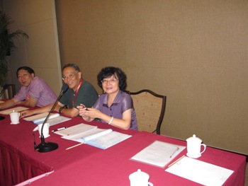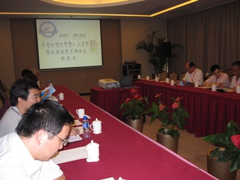 8月8日晚上7:30-9:00,纵横输入法研讨会在工大建国饭店三楼牡丹厅举行。董明传董事长主持会议,周忠继先生参加了研讨会。研究所周克兰、张玉华、朱晓旭老师参加了会议。来自上海、天津、武汉、北京、山西的代表分别就本地区纵横码普及推广情况、遇到的问题、软件应用、今后的方向等方面提出了看法,最后周忠继先生做了总结性发言,对各位代表的一些疑问做了回应。