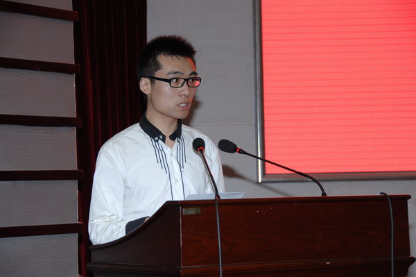 计算机科学与技术学院2009级本科生朱杰同学作为学生代表发言,回顾了本科四年中参与纵横汉字输入法软件研发工作的经历,感谢纵横研究所为自己的成长提供良好的发展平台。