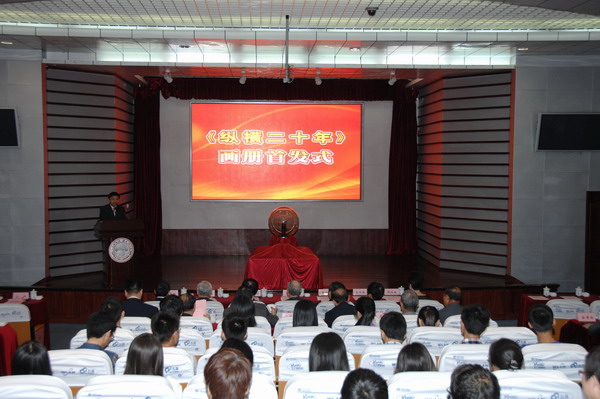 随后,举行了《纵横二十年》画册首发式。周忠继先生、金明主任、王鸿声市长和王卓君书记共同启动了水晶球为画册首发揭幕。