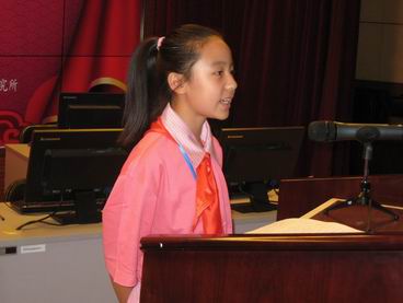我叫安景婕,是江苏省海安县教师进修学校附属小学五年级的学生。今天,我们相聚在人才辈出的北京教育考试院,一同见证着纵横汉字输入法的神奇,一同分享着它带给我们的快乐,一同品味着这盛夏的果实。在这里,首先请允许我作为参赛选手,向周忠继爷爷致以崇高的敬意!