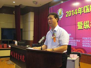我非常高兴出席由中国教育学会、中国职业技术教育学会、中国成人教育协会、中国民办教育协会、中国教育技术协会、北京职业教育学会、北京成人教育协会、香港苏浙沪同乡会共同主办;北京纵横码推介培训中心、北京教育考试院、北京老教育工作者总会、苏州大学纵横汉字信息技术研究所承办的“2014年CKC杯全国纵横汉字输入大奖赛暨纵横码学术研讨会”,并热烈欢迎全国各地以及香港特别行政区致力于纵横码推介、培训的各级领导、嘉宾、教师、获奖选手和各界朋友们出席北京召开的会议。