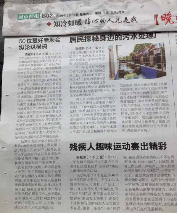 姑苏区老年大学校长沈建中表示,老年学员平时上课就很主动、刻苦。在2014年,姑苏区老年大学还组队代表江苏省参加全国纵横码汉字输入法计时比赛,获得全国老年组三个三等奖、一个优秀奖的好成绩。姑苏区老年大学下半年仍将继续在三个办学点开展纵横码汉字输入法免费培训班,老年朋友届时可以留意城市商报晚晴的通知。此外,从5月20日起,姑苏区老年大学开始下半年学期的报名工作,感兴趣的老年朋友可以拨打65225740或者前往马医科37号、庆元坊口的姑苏区老年大学(本部)咨询。
