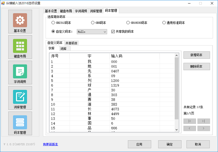 此时即显示新的自定义码本,即为当前用户输入码本。