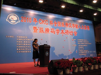 2010年8月7日至10日,2010年CKC杯全国纵横汉字输入大奖赛暨纵横码学术研讨会在北京隆重举行。苏州大学纵横汉字信息技术研究所名誉所长周忠继先生、所长钱培德教授、苏州大学计算机学院杨季文院长参加了本次活动。参加本次活动的研究所老师还有李培峰副所长及赵雷、朱晓旭、顾平、程宝雷、陈宇、周克兰、张玉华等7位老师。几位老师参加本次活动的一个重要任务是协助2010年CKC杯全国纵横汉字输入大奖赛的竞赛组作好大奖赛的技术保障工作,同时作为大赛裁判委员会的成员做好比赛的评审工作。