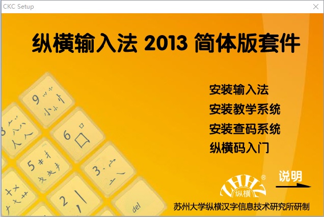 纵横输入法2013版简繁一体,根据计算机系统自动选择安装简体软件或繁体软件,以下为简体版安装启动界面: